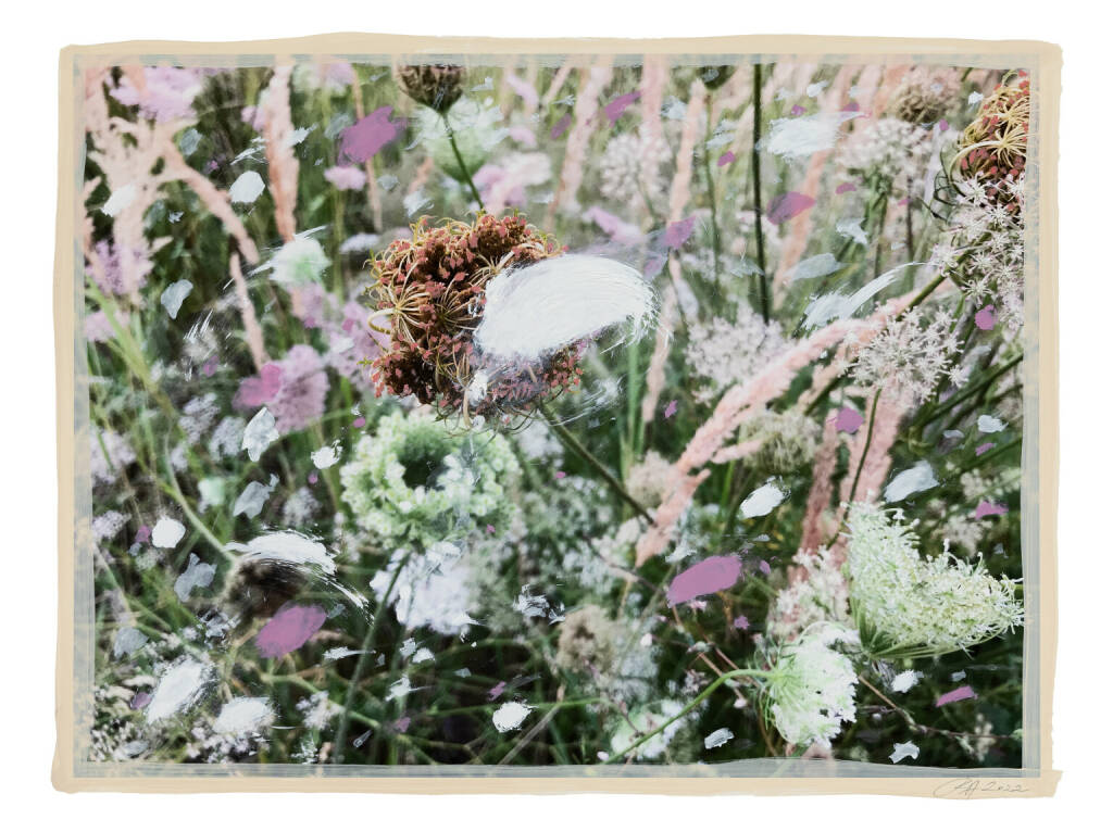 Regina Anzenberger The Illusion of Summer VIII, 2021/2022, from the series Gstettn pigment print on Hahnemuehle Photo Rag Ultra Smooth mounted on archival carton, acrylic painting, museumglass, framed, 60 x 80 cm