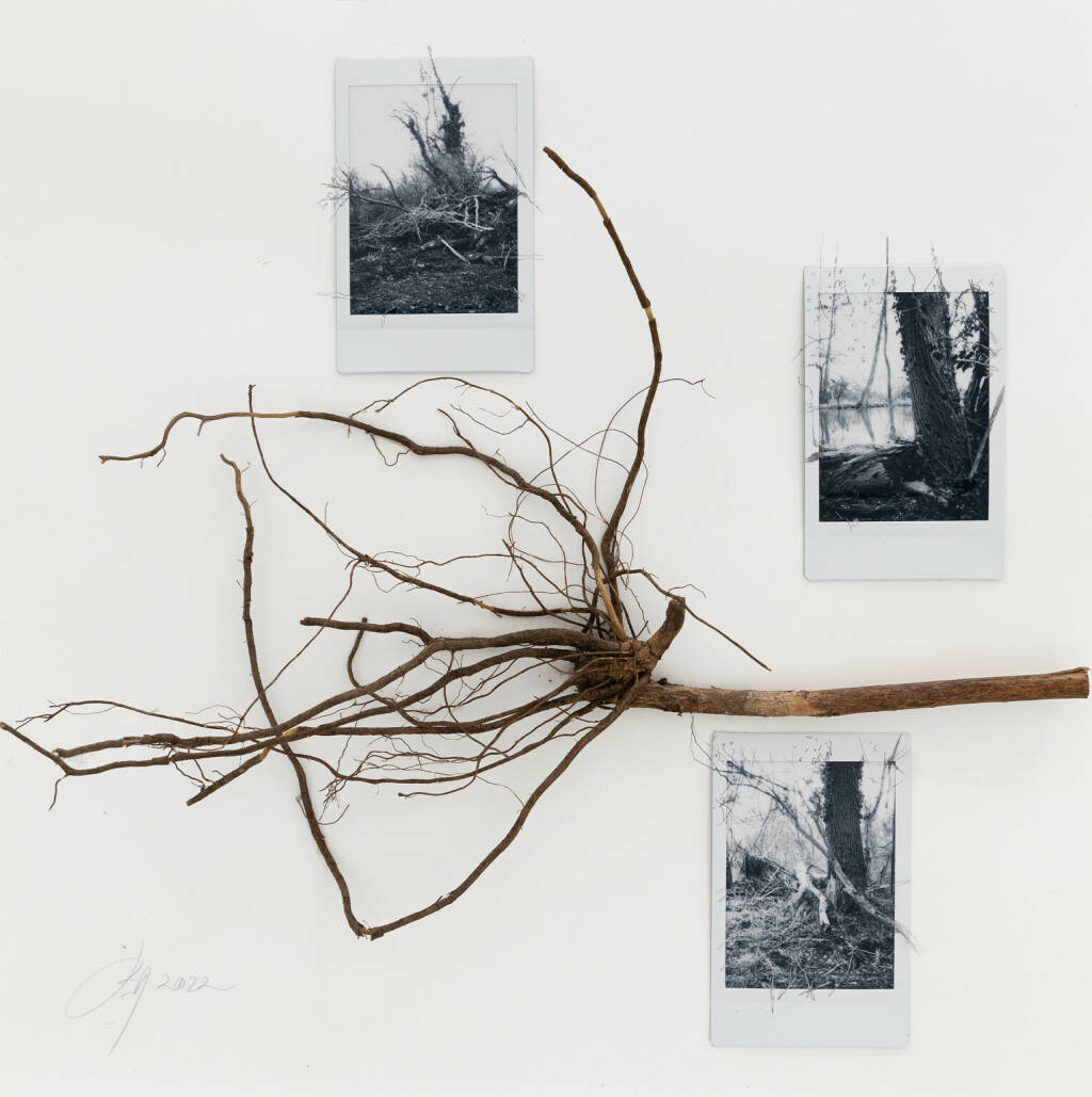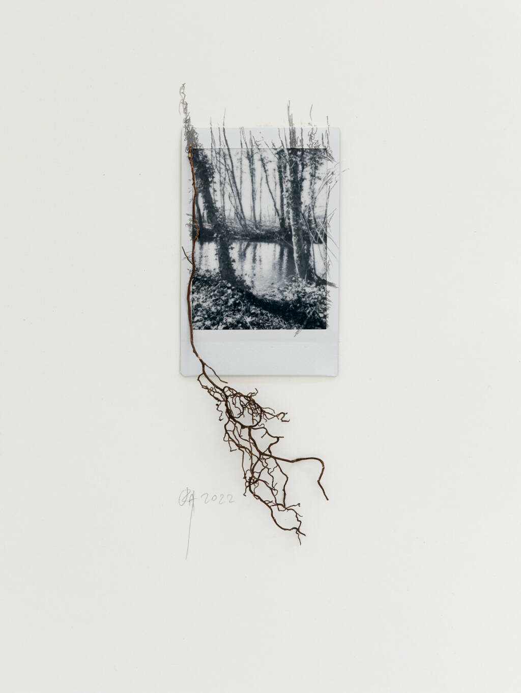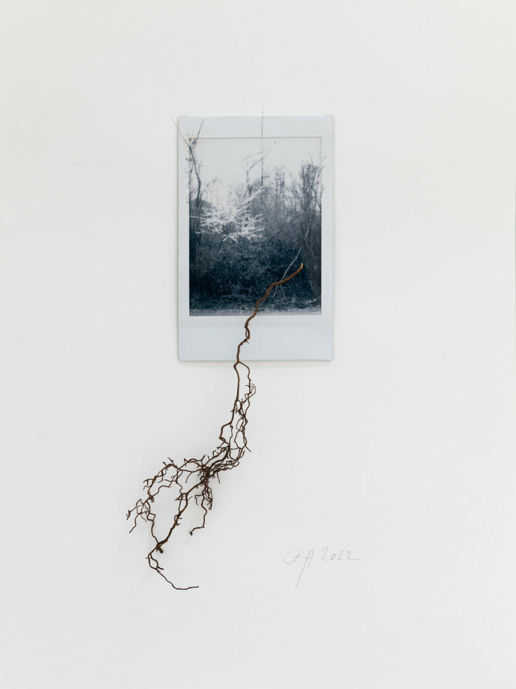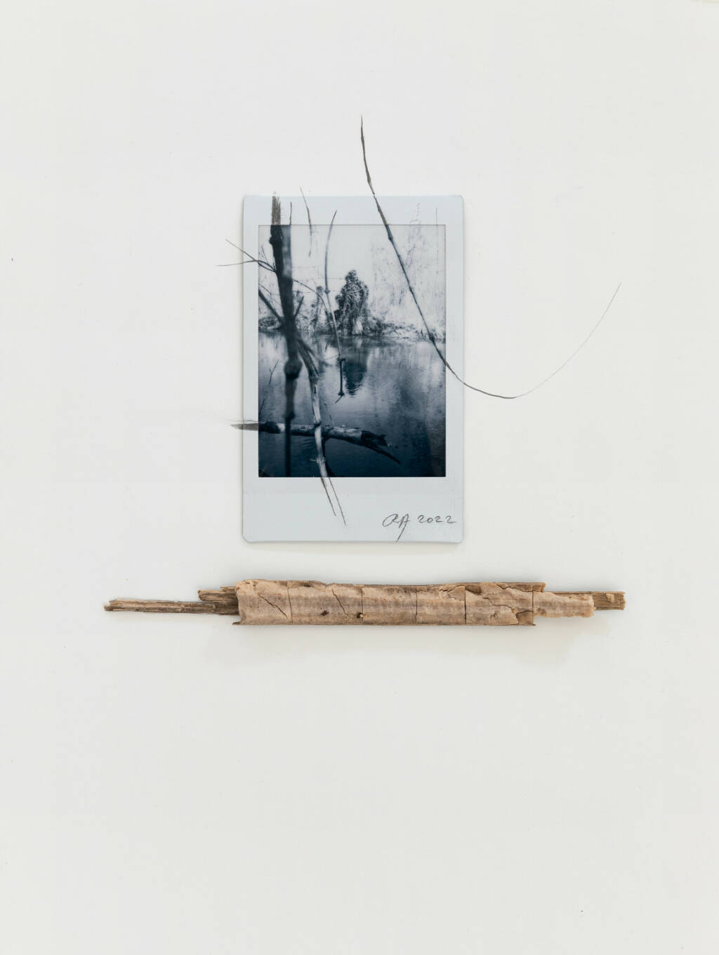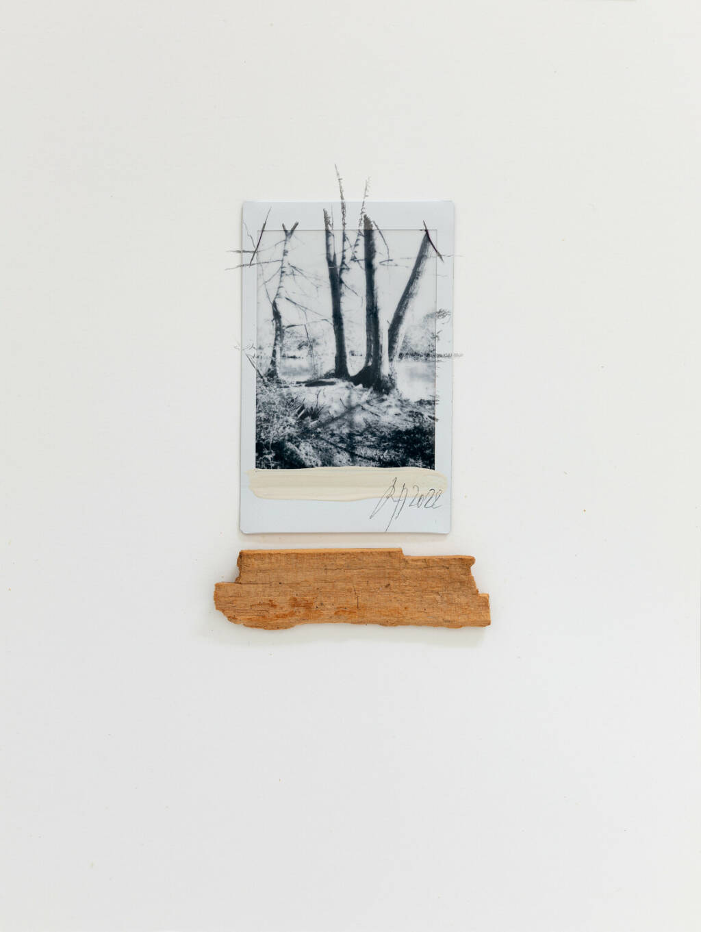 Regina Anzenberger The Zen Moment VI, 2022 mixed media, instant photograph, pencil, found objects, 15 x 15 cm