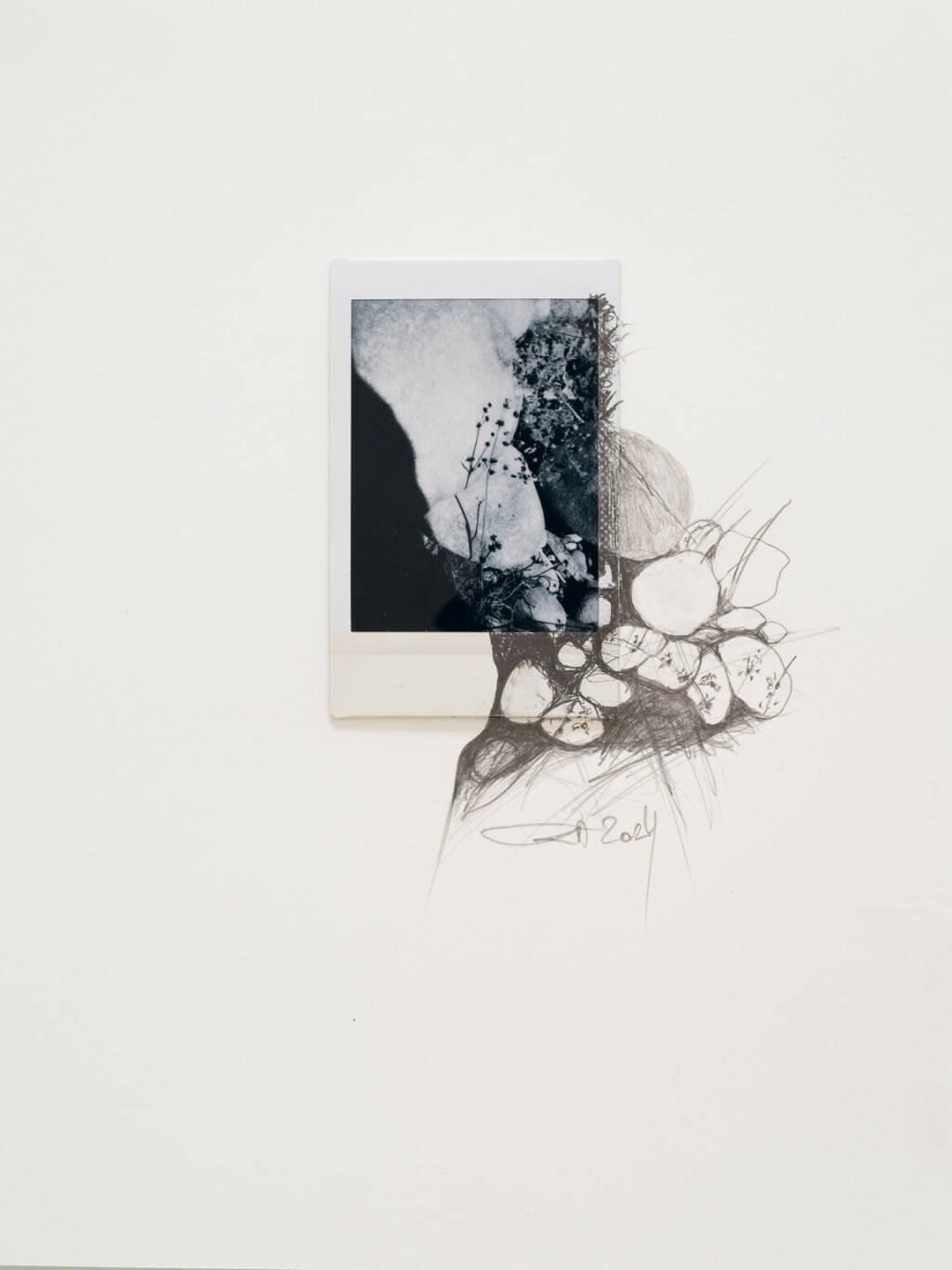 medium: mixed media, instant photograph, acrylic, pencil, found object