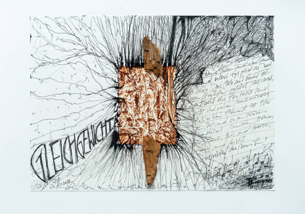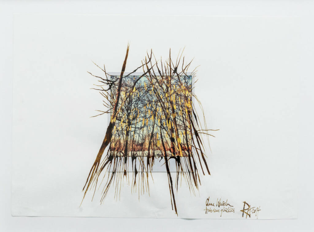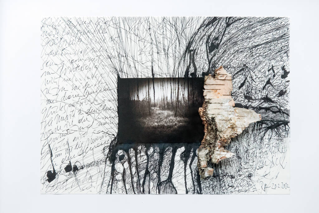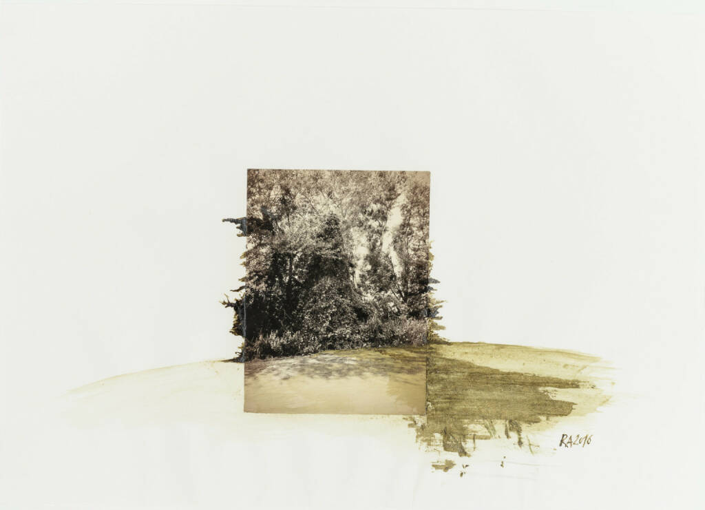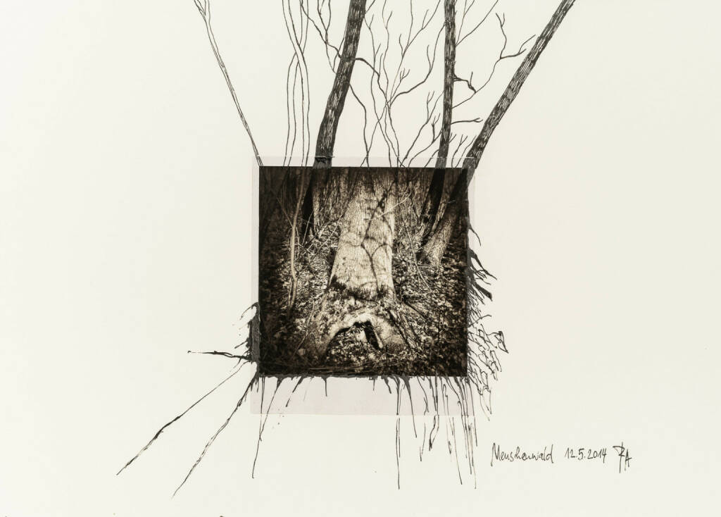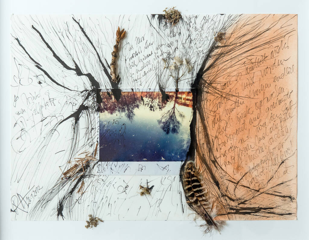 Regina Anzenberger Extended XV, 2014 mixed media of pigment print on Hahnemuehle PhotoRag Ultra Smooth, ink, found objects, framed, 40 x 50 cm