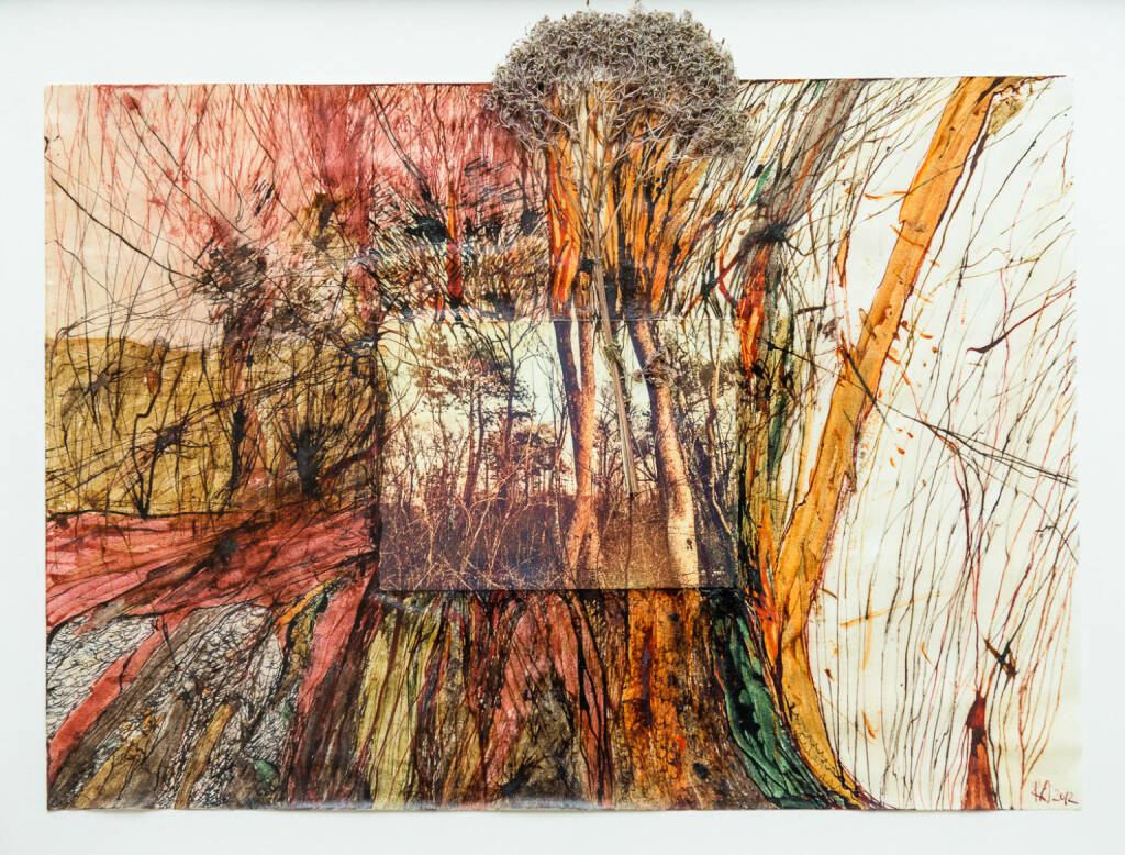 medium: mixed media of pigment print on Hahnemuehle PhotoRag Ultra Smooth, ink, found objects