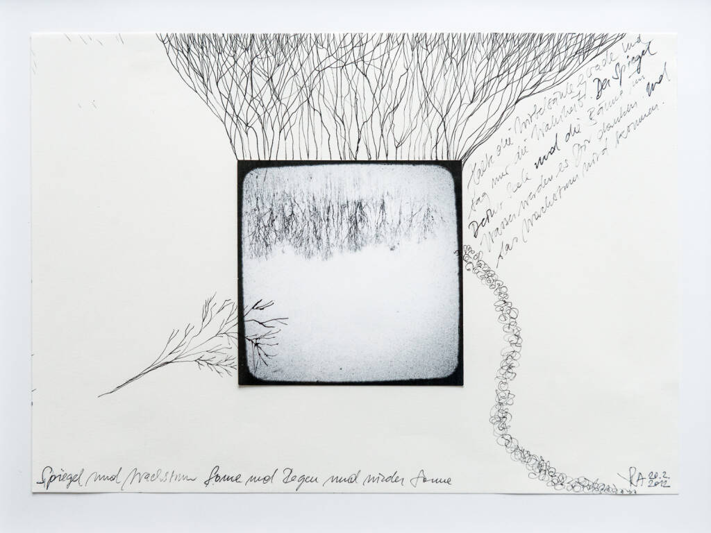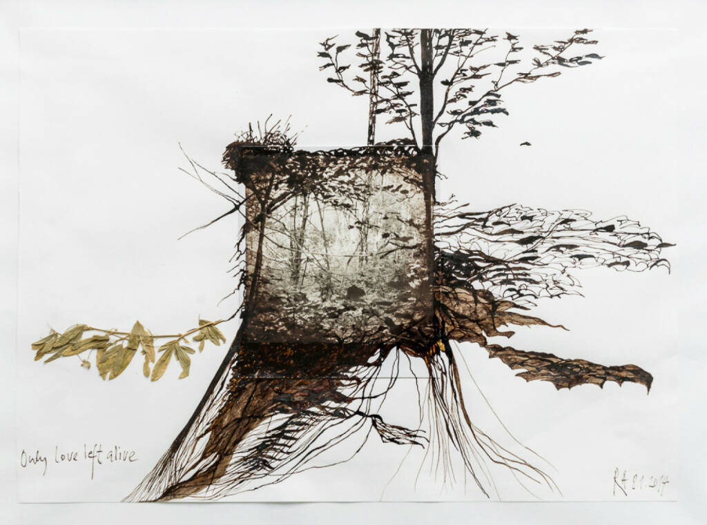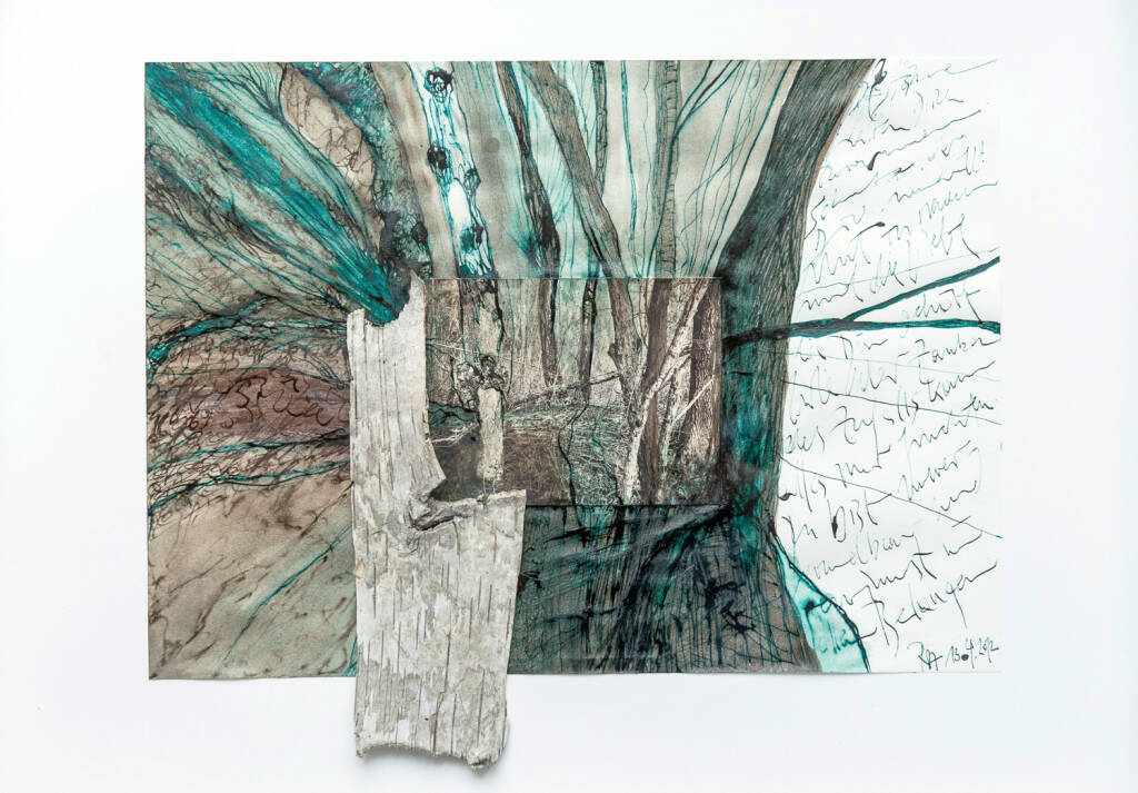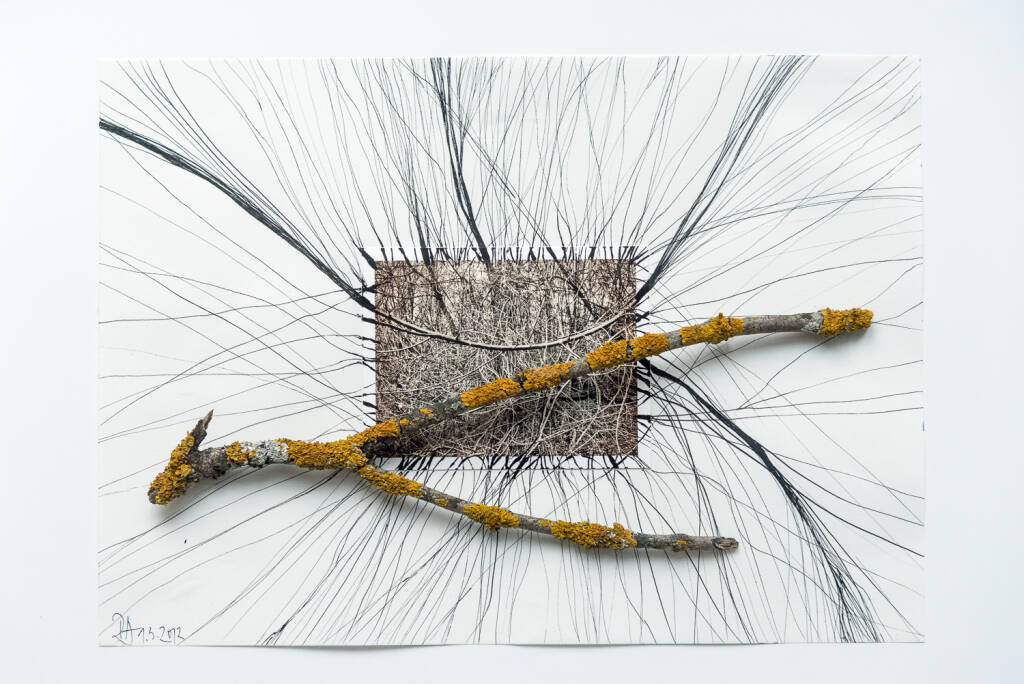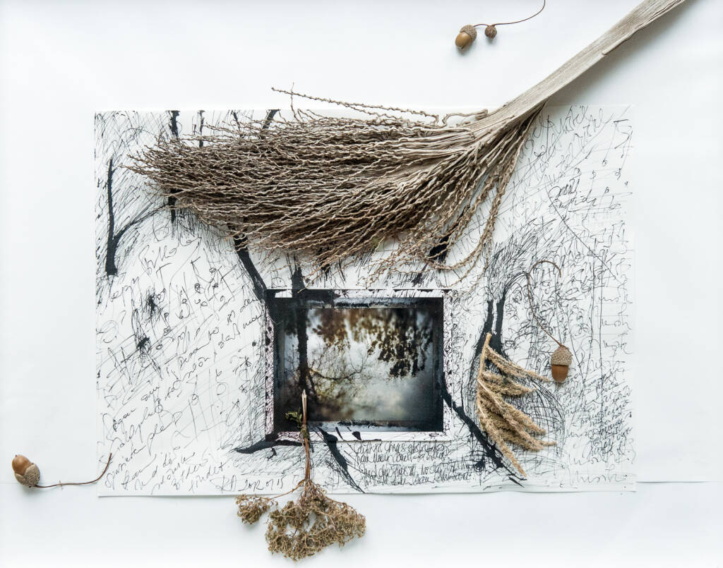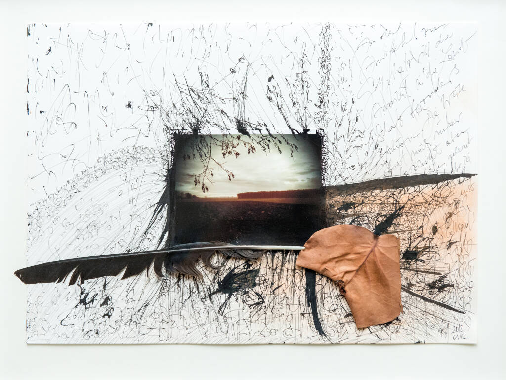 Regina Anzenberger Extended XV, 2014 mixed media of pigment print on Hahnemuehle PhotoRag Ultra Smooth, ink, found objects, framed, 40 x 50 cm