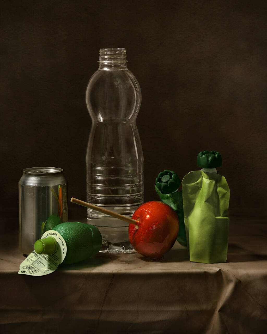 Natalie Strohmaier Nature Morte avec Flacon en Verre et de Fruits, 2022 pigment pring on Hahnemuehle Torchon , 50 x 40 cm