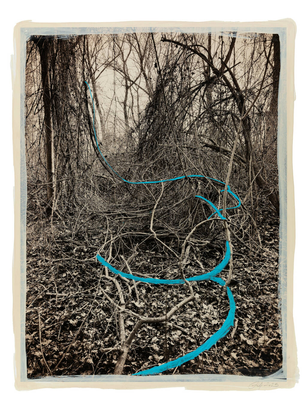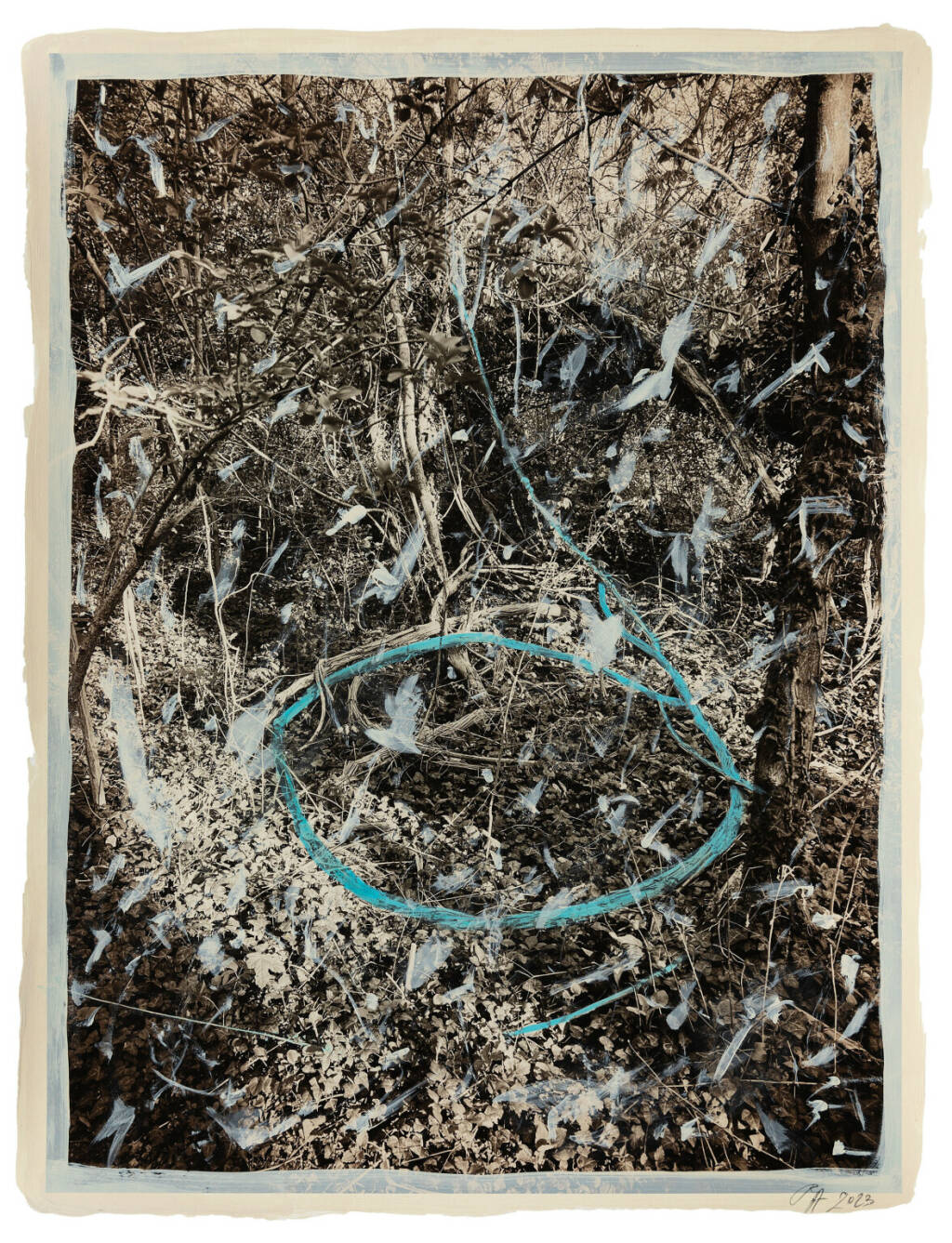 Regina Anzenberger Roots & Waltz I, 2021-2022 mixed media, pigment print on Hahnemühle PhotoRag Ultra Smooth, acrylic painting, pencil writing, 50 x 40 (reprint, unframed)