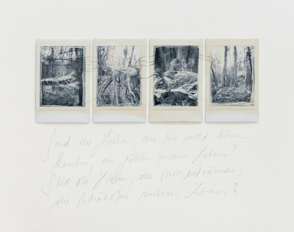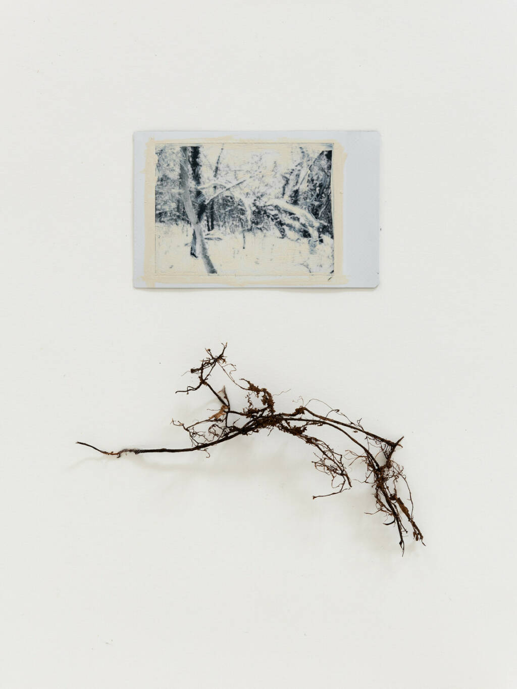 Regina Anzenberger Roots & Waltz I, 2021-2022 mixed media, pigment print on Hahnemühle PhotoRag Ultra Smooth, acrylic painting, pencil writing, 130 x 100 cm