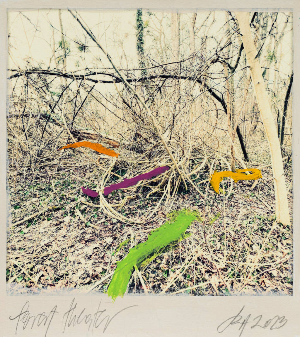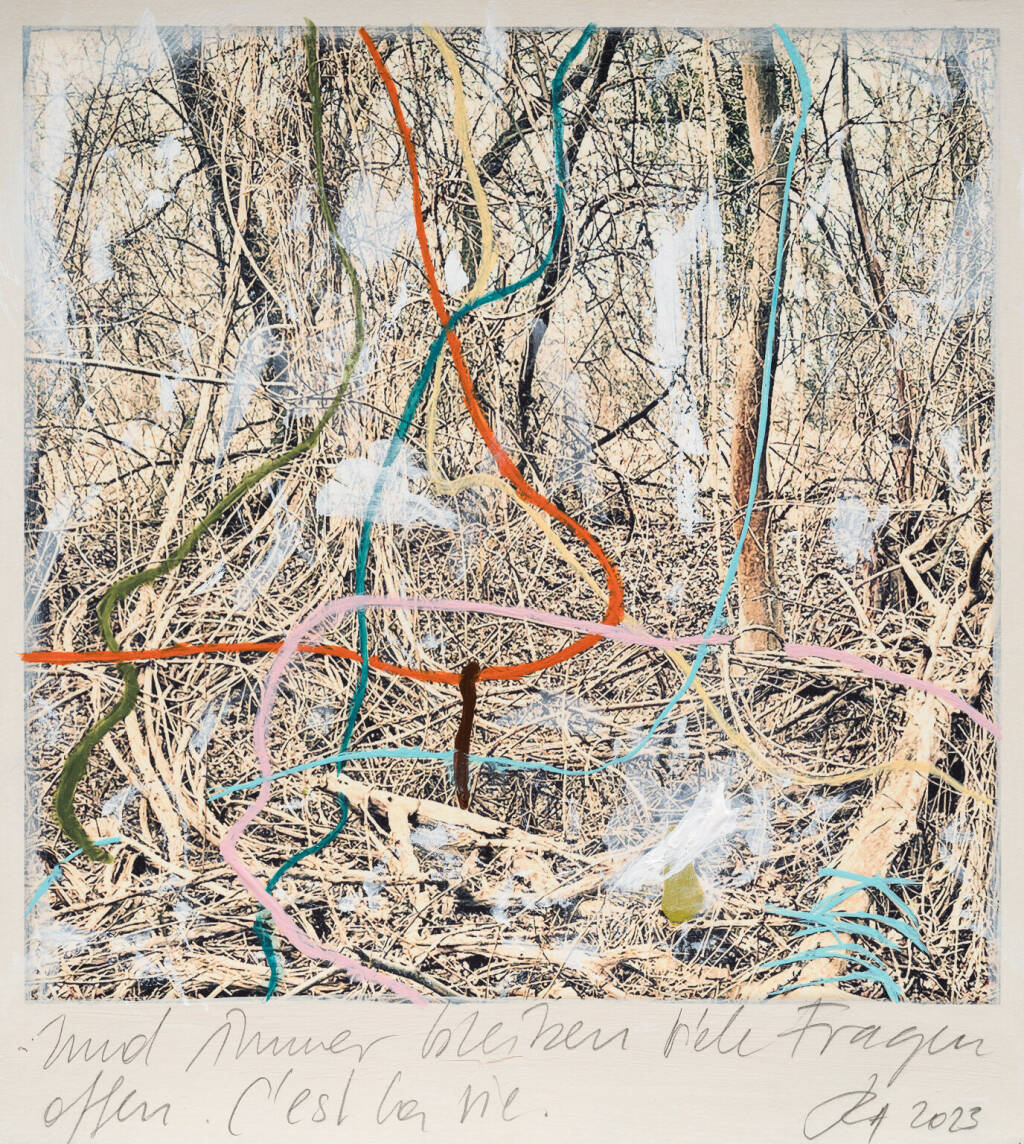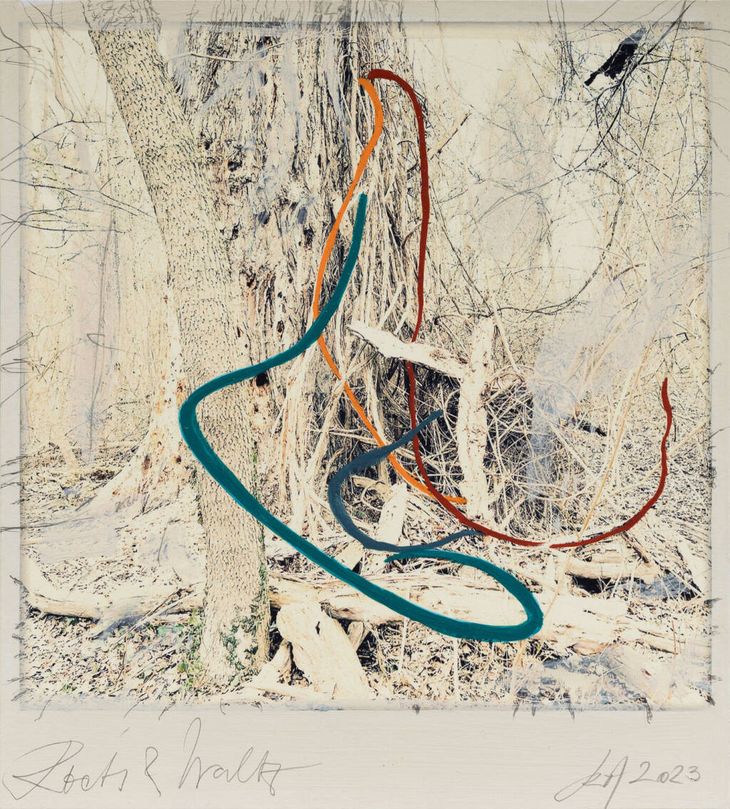 Regina Anzenberger Roots & Waltz sf series 14, 2023 pigment print on Hahnemuehle PhotoRag Ultra Smooth, acrylic, pencil, 20 x 20 cm