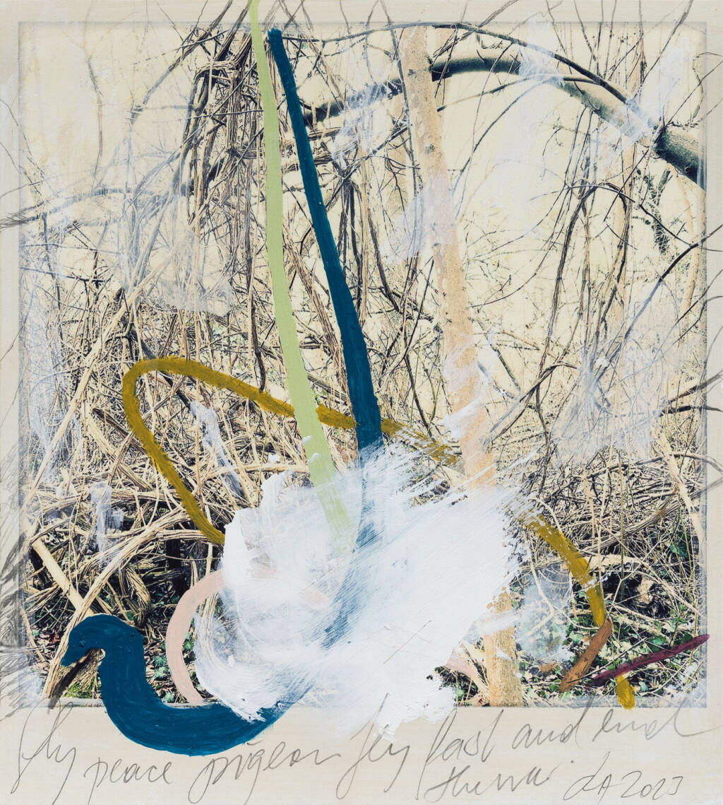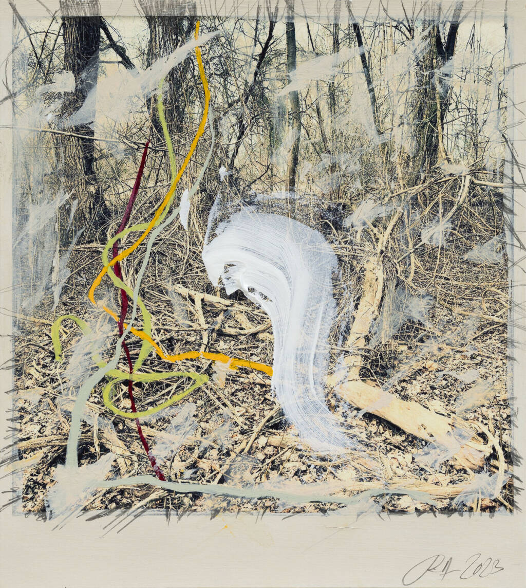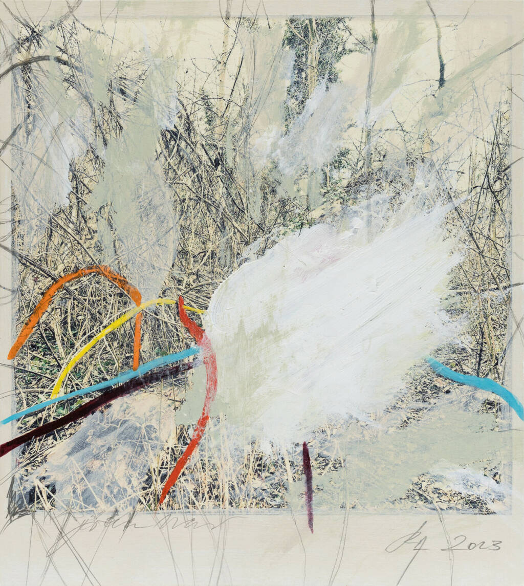 Regina Anzenberger Roots & Waltz sf series 15, 2023 pigment print on Hahnemuehle PhotoRag Ultra Smooth, acrylic, pencil, 20 x 20 cm