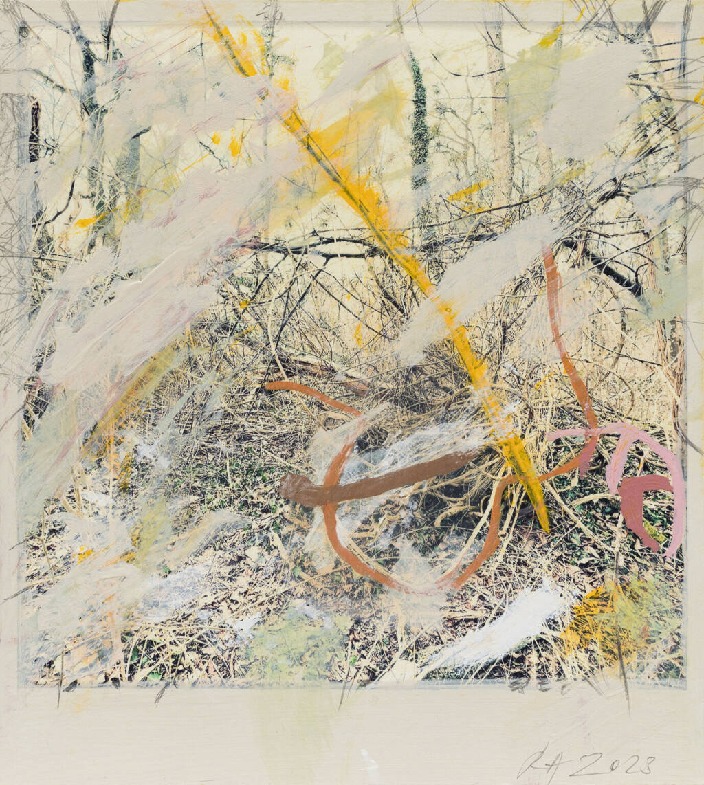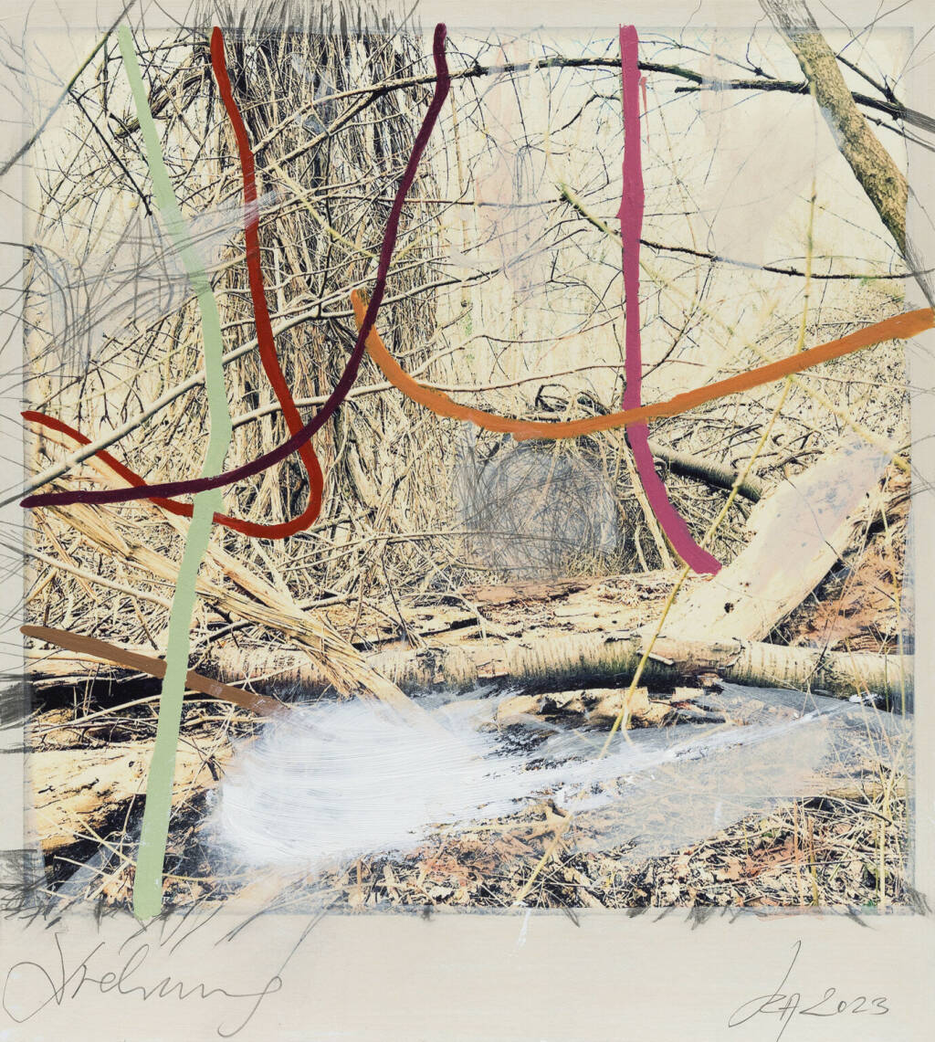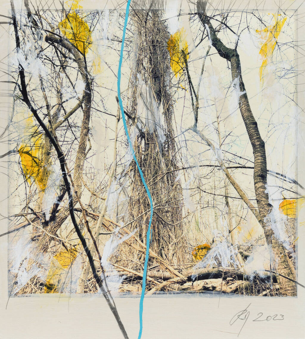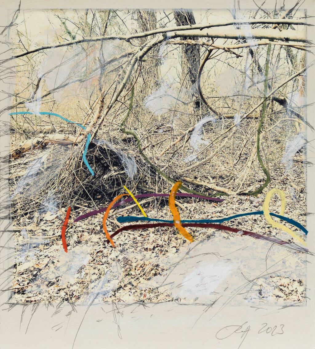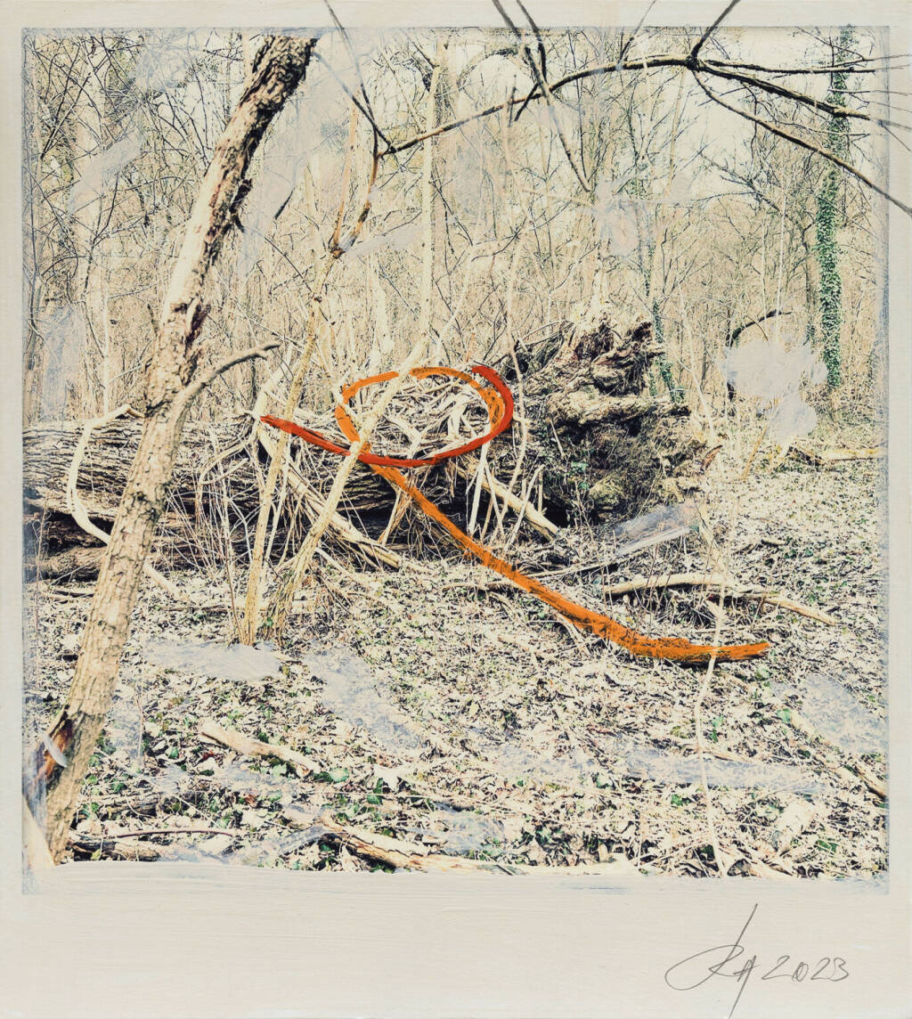 Regina Anzenberger Roots & Waltz sf series 8, 2023 pigment print on Hahnemuehle PhotoRag Ultra Smooth, acrylic, pencil, 20 x 20 cm