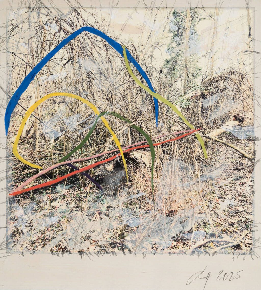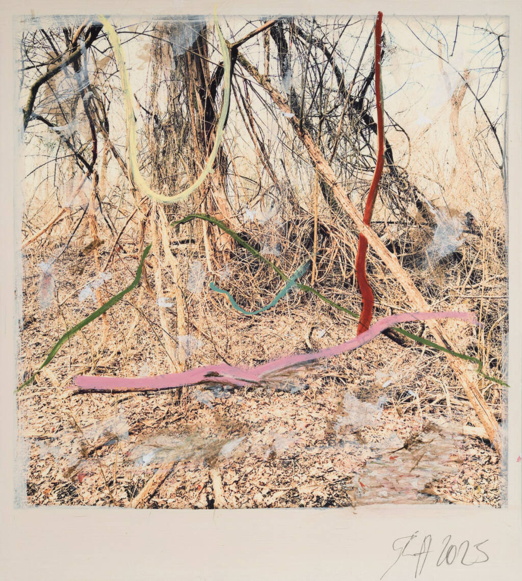 Regina Anzenberger Roots & Waltz sf series 23, 2025 pigment print on Hahnemuehle PhotoRag Ultra Smooth, acrylic, pencil, 20 x 20 cm