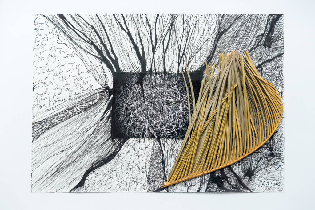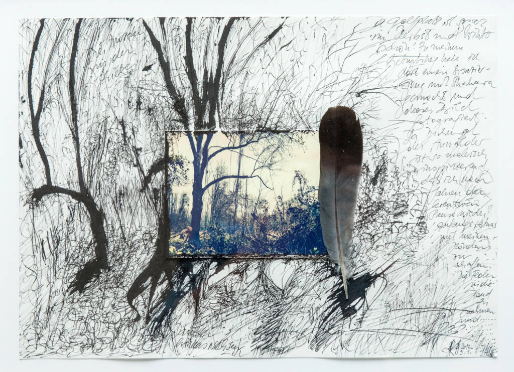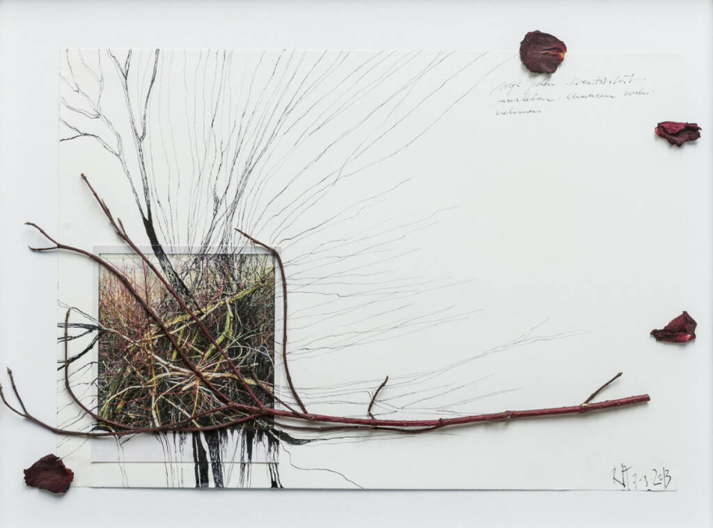 Regina Anzenberger Extended XV, 2014 mixed media of pigment print on Hahnemuehle PhotoRag Ultra Smooth, ink, found objects, framed, 40 x 50 cm
