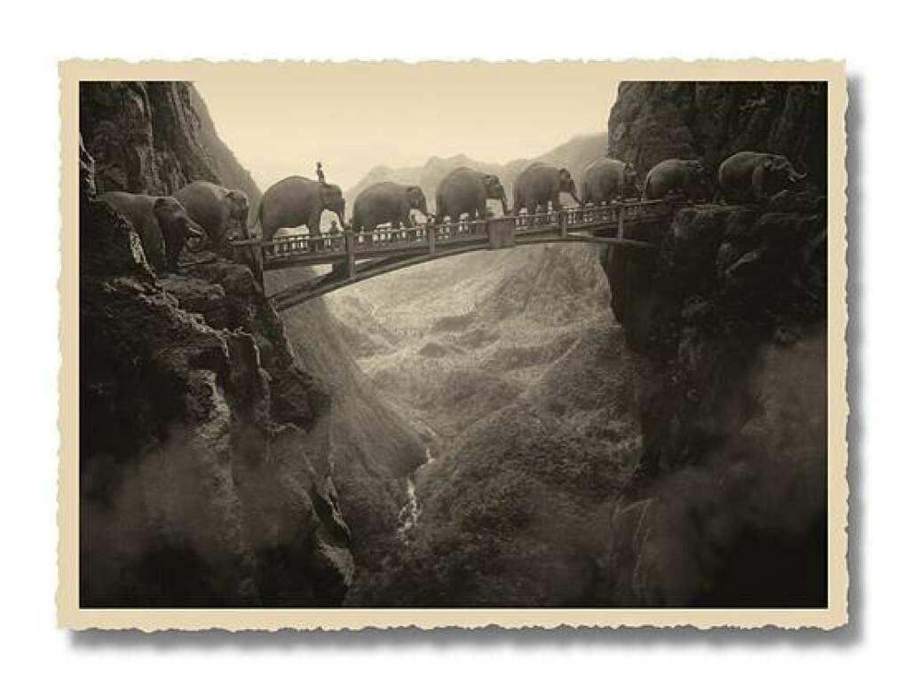 Thomas Herbrich Elephants on the Bridge, 2009 tinted pigment print on Hahnemuehle Baryta, 13 x 18 (22 x 28) cm