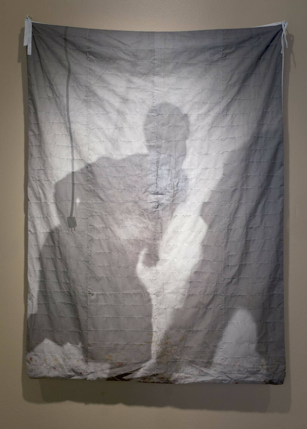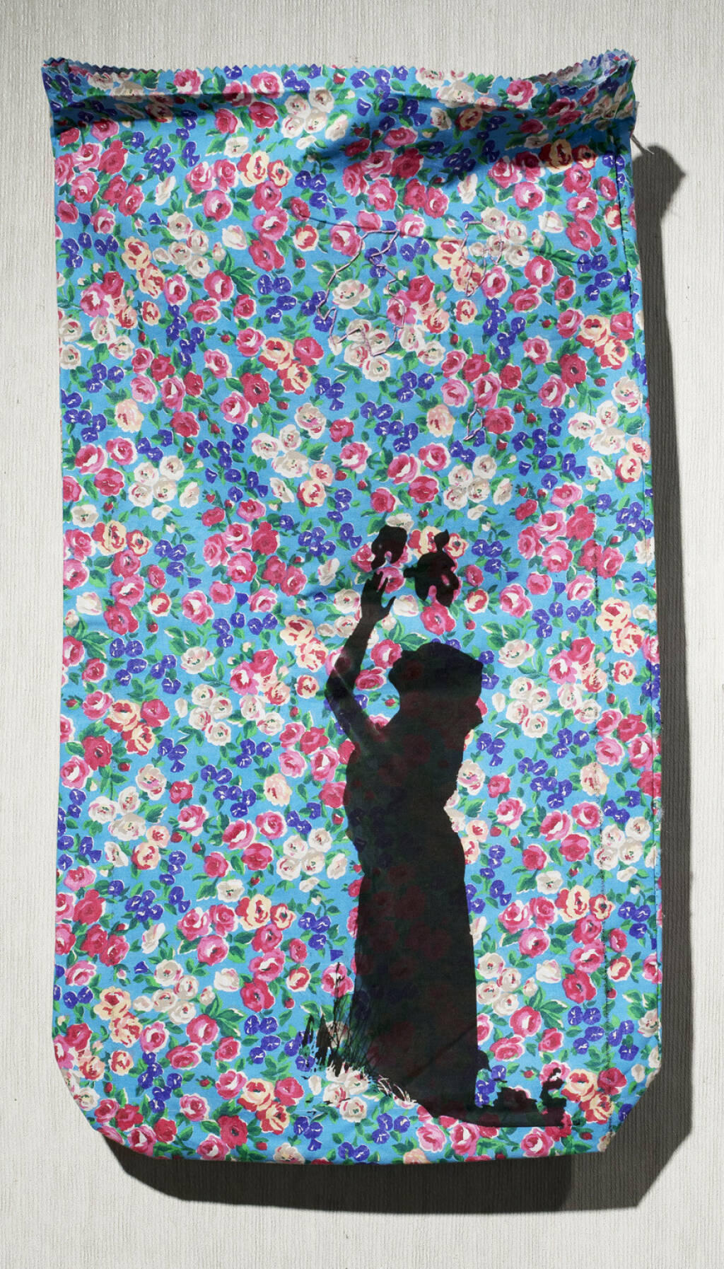 Letitia Huckaby Raison d'etre, 2012 pigment print on vintage flour sack, 63 x 33 cm