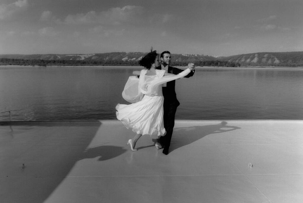 title: Marina Livanova, TV personality and actress, in front of the statue "Russian Venus" by Boris Kustodiev, which was given by Maxim Gorki to his native city Nizhniy Novgorod, 1996